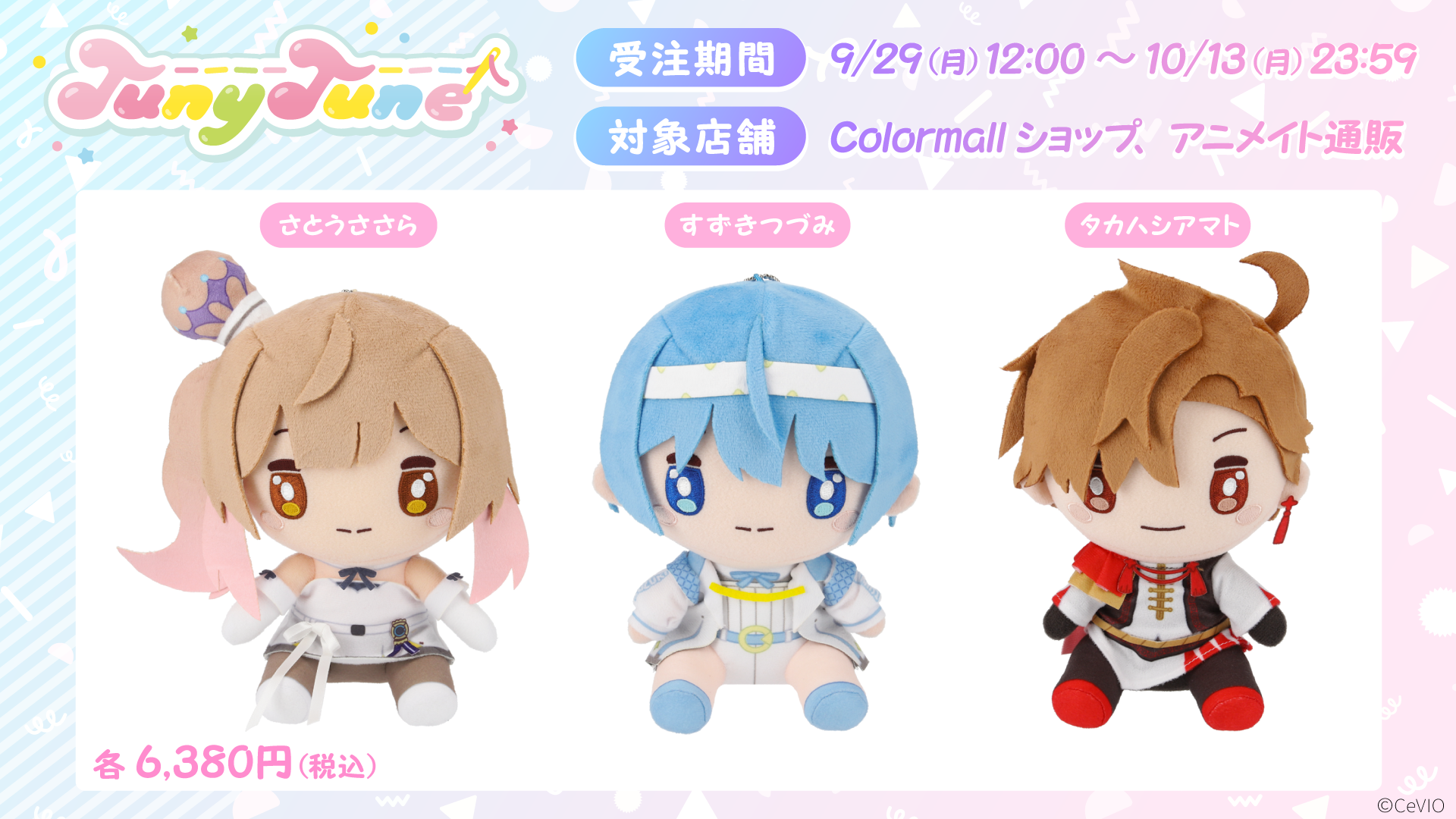 企画第1弾として、音声合成キャラクター×アイスクリームをコンセプトにした「voiCECREAM!!」より琴葉 茜・葵各グッズ、また”ちっちゃくて可愛い音“をイメージしてキャラクターをぬいぐるみ化する「TunyTune」より人気の合成音声キャラクター「さとうささら」「すずきつづみ」「タカハシアマト」のぬいぐるみを販売します。「TunyTune」では3人のセットにポストカードの特典がつく「フレンズセット」も限定販売します。第2弾以降の企画も進行中です。Colormallの今後の広がりにぜひご期待ください。