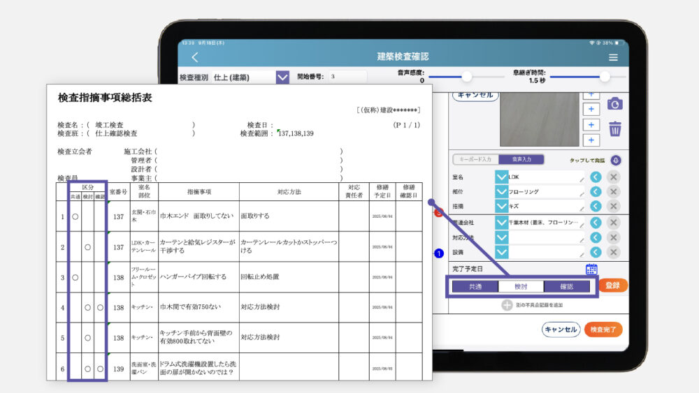 今回、vGate ASRは騒音環境下でも使える「仕上検査専用の音声入力機能」として採用いただきました。指摘内容を話すだけで、正確に記録します。手がふさがっている状態や、事業主検査などの迅速な対応が求められる場面でもミスなくスムーズに検査できます。