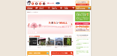 2011年4月、お客様への還元サービスとしてポイントカード「たまルン」が誕生しました。たまルン加盟店または、ネットショップ「たまルン MALL」での購入金額に応じたポイントが付与、さらには、キャンペーン応募によってもポイントを貯めることができます。貯まったポイントはネットショップでの利用以外にも加盟店で利用できる「たまルンポイントサービスお買物券」と交換できます。