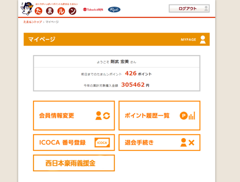 また、たまったポイントの確認、会員情報の変更はマイページで会員がいつでも行えます。会員向けにはマイページの提供およびメールでキャンペーンやイベント情報やお得なクーポンの配信を実施。